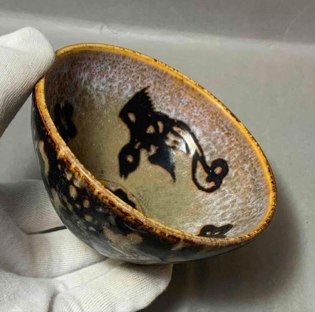 【お年玉セール特価】 お値下げしました、4個組 九谷 金襴手 魚 内染付 麒麟文 盃 煎茶碗 工芸品