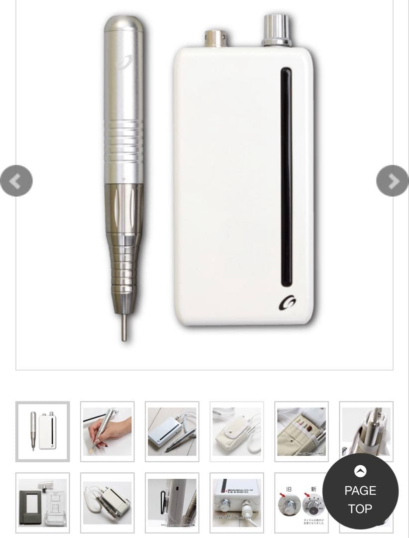 3ヶ月ほど使用致しましたいろんなマシンを試したくて新しいものを購入したため出品致します!ボタンで一旦停止ができるので便利でした!セット内容・本体・ハンドピース・アダプターコード・ベルトフック・ハンドピースホルダー・ハンドピーススタンド・本体スタンド・取扱説明書今まで使っていた他の製品よりも回転音がやや大きい気がします。■サイズ本体:(約)W130× D70 × H40mmハンドピース:(約)W134 × D18 × H18mm■重量本体:230gハンドピース:153g■電圧:110~240V AC(50/60Hz)■定格消費電力:30W■最高回転速度:35,000rpm(正逆回転可能)| カテゴリー: | コスメ・美容>>>ネイルケア>>>手入れ用具 |